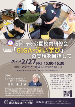 また、本校は令和9年4月に、近隣の広幡小、六郷小と統合し、新しい学校『米沢市立広井郷小学校』としてスタートを切ります。残りわずかとなった塩井小学校の歴史をしっかり締めくくるため、学校・家庭・地域が一丸となり、塩井っ子の成長を支えていきます!!